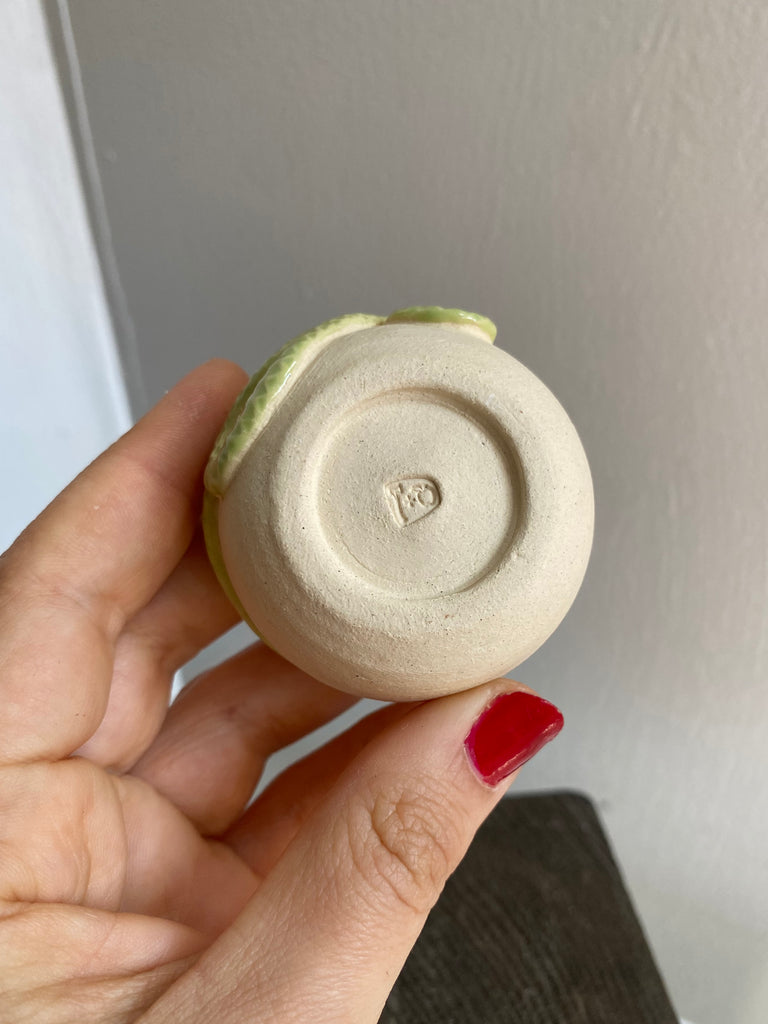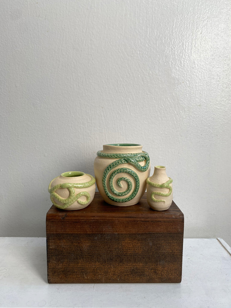 One of a kind wheel thrown mini stoneware pot with hand coiled and detailed snake.