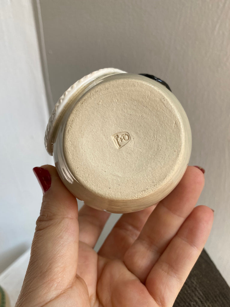 One of a kind wheel thrown stoneware vessel with hand coiled and detailed black and white snakes.