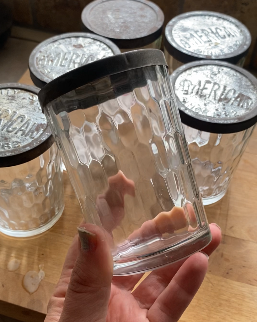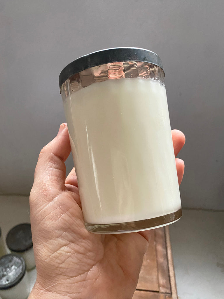 Vintage optic glass snuff jar with a hand poured soy wax candle. Such a pretty sparkly light from this glass. You're gonna love it.