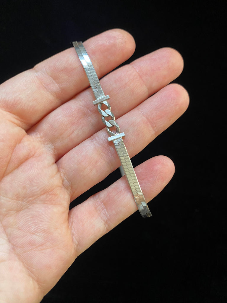 Mixed sterling silver vintage links reimagined into a modern classic.
