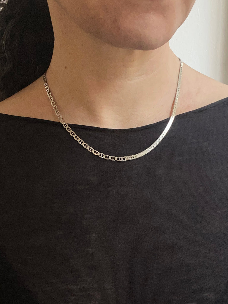Mixed sterling silver vintage links reimagined into a modern classic.