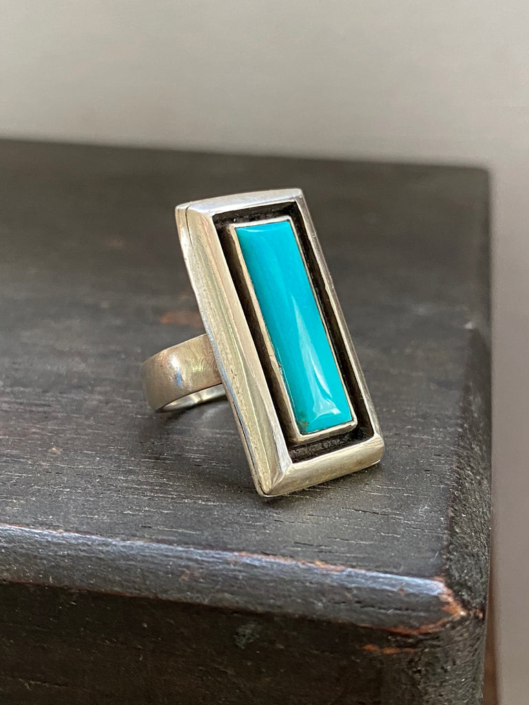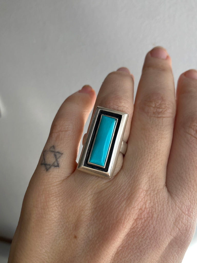 One of a kind ring with Turquoise from the Kingman mine in Arizona.